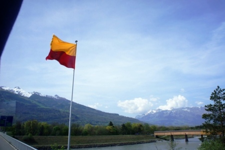 スイスとリヒテンの国境。スイス入国審査なかったんだよね。リヒテンはもう行くこと無いだろう。ところで入国スタンプはオプション的な位置づけで有料である。
