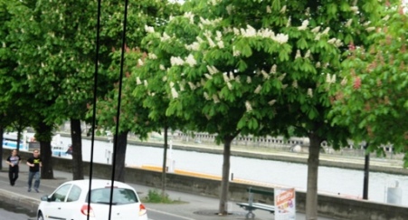 パリと言えばマロニエ通り、花は見頃・・だったのにすっかり忘れて車窓からのピンぼけショットしかない><マロニエ可愛かったです。