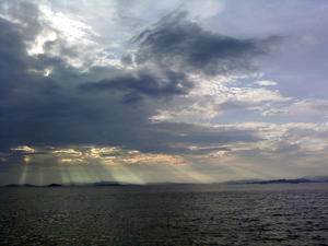 釣りで。夕暮れの海が好きです。もっと近ければ毎日でも行きたい海。