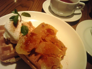 初めて行った喫茶店のワッフル、学生の女子ばっかりで店内うっさいがあほみたいな恋愛話聴いてると楽しい、自分が世界の恋の中心のような時期が私にもあった別に盗み聞きじゃない聞こえてくるんですもん皆さん陶酔中であります