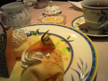 ごくたまに行く喫茶店のクレープ、ここは銀食器でお皿もかわいい、私は食器が好きです。でもウエイトレスの人がじっと立ってるのでちょっと寛げない