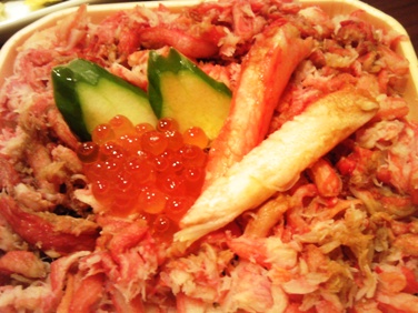 かにずし、醤油かけ過ぎたら蟹の味わかんない、いくらは苦手なので何故鎮座しているのかさっぱり理解できない。装飾的な意味合いだとしたらよく解ります。見た目だけはかわいい