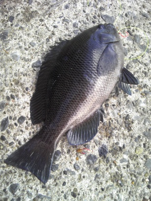 今日は久々に釣り行けた。ちっさいけどおかずになる程度のグレ(共通語ではめじなという)2匹とかさごのちっさいのが連れた!竿が一本折れた。