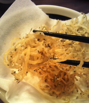 生しらすいただいたので半分釜あげ、半分揚げてみた。味濃い!フライは驚くほどジャンキーな味がした。何か入れたのって言われたけど塩振っただけ。