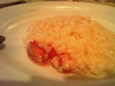 いちごのリゾット、ヒイイイイィィ、いちごっていっても雲丹のあれを「いちご煮」という北国のあれじゃなくてフルーツの苺である。どっちかっていうと無い